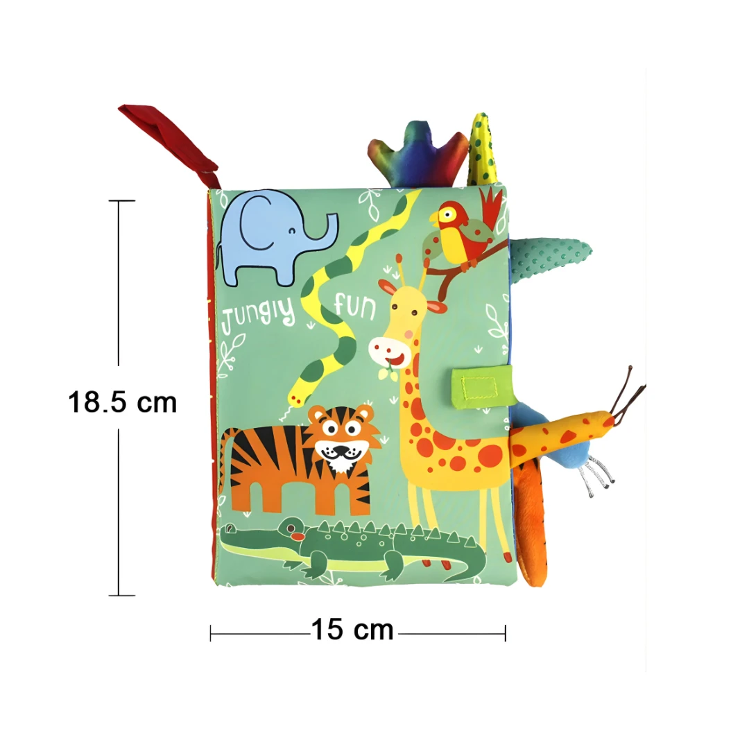 JungleAbenteuer entführt die Kleinsten in eine farbenfrohe Dschungelwelt voller Tiere und Entdeckungen. Das weiche Stoffbuch fördert spielerisch die Sinneswahrnehmung, Feinmotorik und Neugier deines Babys. Mit knisternden Seiten, verschiedenen Texturen und leuchtenden Farben regt es alle Sinne an. Sicher, CE-zertifiziert und perfekt für unterwegs – ein liebevolles Geschenk für die frühkindliche Entwicklung.
