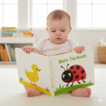 Schon im zweiten Lebensjahr beginnen Kinder, Farbkontraste besser zu erkennen und zu greifen. Baby-Bilderbücher mit großen, einfachen Illustrationen eignen sich hervorragend für frühe kognitive Kommunikationsspiele, vor allem Bilderbücher mit Tiermotiven, die besonders beliebt sind. Auch wenn Ihr Kind noch nicht spricht, kann es bereits viel verstehen, und Bücher helfen, die ersten Wörter spielerisch zu lernen.